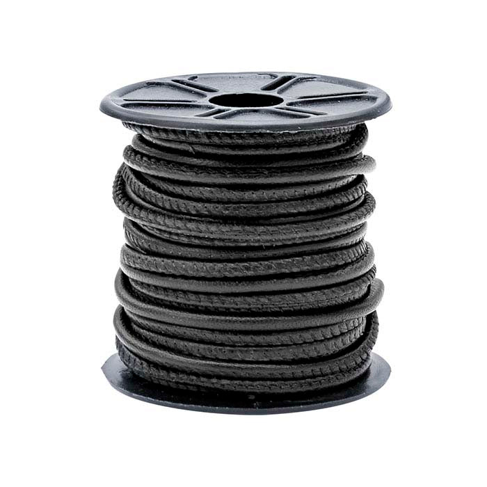 حبل دائري من جلد نابا الأسود بسماكة 2.5 مم، بكرة بطول 10 أمتار
