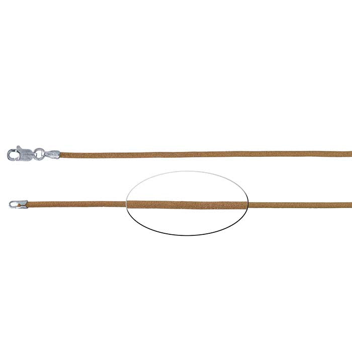 This smooth, natural leather cord necklace looks great when worn alone or customized with additional elements. Offer it as-is or encourage customers to create a one-of-a-kind design by offering a variety of pendants, charms or drops they can choose from to personalize their necklace. The necklace is finished with sterling silver end caps and clasp. Rhodium-plating provides a durable, tarnish-resistant finish to the clasp.