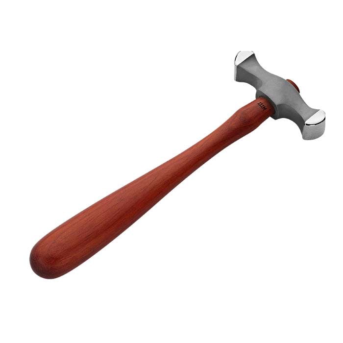هذه المطرقة ذات القابض الضيق من Fretz® مثالية لإنشاء أشكال مضادة للانحناء دون ترقيق المعدن عند استخدامها مع ركيزة Fretz M-104 أو M-105 المقعرة. تتميز المطرقة بوجهين ضيقين منحنيين ينتجان نسيجًا بيضاويًا دقيقًا. الأسطح الواسعة للعمل على هذه المطرقة تجعلها مناسبة جدًا لنقش الأسلاك. تُطبق المطرقة على الجانب الخارجي للمعدن، مما يجبره على الالتصاق بالركيزة أو الشكل الآخر. صممه صانع المعادن الرئيسي بيل فريتز، هذا المطرقة مصممة للصلابة والمتانة، وتقدم جميع ميزات مطرقة Fretz®. حجم الوجه، الرأس بالإضافة إلى الوزن والطول ونهاية المقبض على شكل مسدس كلها مصممة وفقًا لمواصفات فريتز لتحقيق التوازن والتحكم والدقة. المقبض مصنوع من خشب بادوك، المعروف بقوته واستقراره وجماله، ومغطى بزيت؛ وهو مصمم بشكل خاص ليمنحك لمسة خفيفة، والعنق الرقيق ينحني قليلاً أثناء الطرق لتحقيق أقصى درجات الراحة. الرأس مصنوع من الفولاذ المقاوم للصدأ من الدرجة 420 ومقسى بالأدوات إلى 50 HRC لأقصى متانة وفعالية.