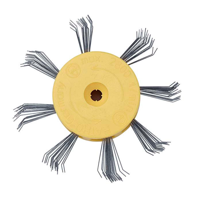أنشئ تشطيبًا جميلًا وملموسًا—بسرعة وسهولة—باستخدام فرشاة MaxiMat بسلك قطرها 4 بوصات. توفر شعيرات السلك (قطر 0.020"/0.45 مم) تشطيبًا متوسط الملمس. قم بتركيب الفرشاة على مغزل مخروطي يمين. تحتوي هذه الفرشاة على شعيرات فولاذية بطول 1-5/16" (تقريبًا) مركبة في محور بلاستيكي بقطر 2 بوصة. استبدل الشعيرات حسب الحاجة للحفاظ على أداء العجلة بفعالية.
