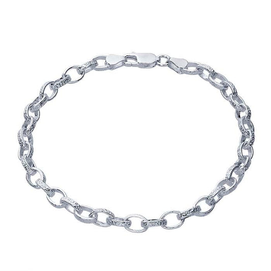 Sterling Silver 5mm Patterned Oval Link Chain Bracelet