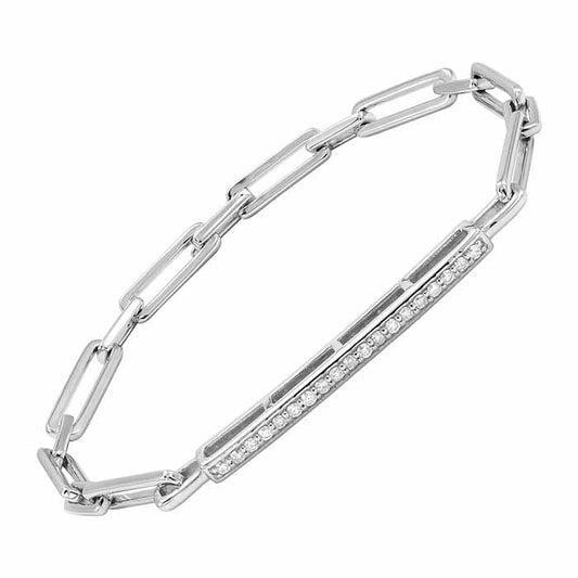 Sterling Silver Diamond-Set Bar Chain Bracelet