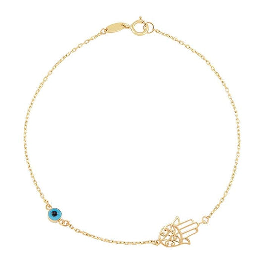 سوار يد حَمْسَة وعين شريرة من الذهب الأصفر عيار 14 قيراط