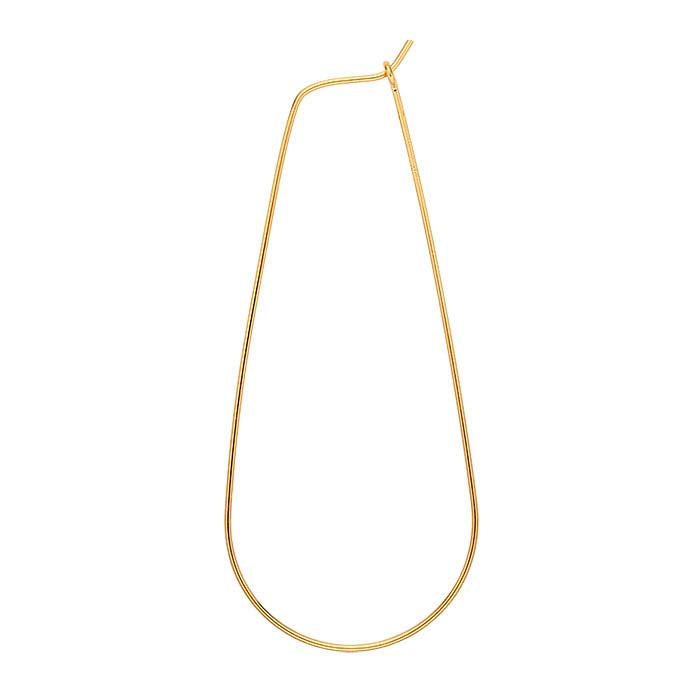 This 14/20 yellow gold-filled hoop earring features an eye-catching teardrop-shaped profile. This earring is attractive sold as-is; if desired, add your own drops, dangles or findings designs to create unique earrings. To open the earring, gently widen the hoop, sliding the straight end out of the ring. Hoop earrings circle the ear from front to back and offer a wide variety of design options.
