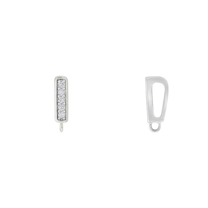 This 14-karat white gold bail is set with five 0.0006-ct. round white diamonds (I1 clarity/G, H, I color; 0.03CTTW) in shared prong mountings. To complete the pendant, use a jump ring to attach a drop, dangle or other design component to the closed perpendicular ring at the base of the bail. This bail is plated with rhodium to ensure a durable, tarnish-resistant finish.