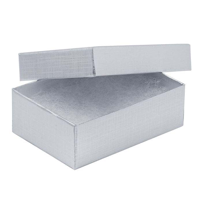 صندوق هدايا من ورق معاد تدويره بلمسة كتان فضية 63.5 مم × 38.1 مم × 22.22 مم