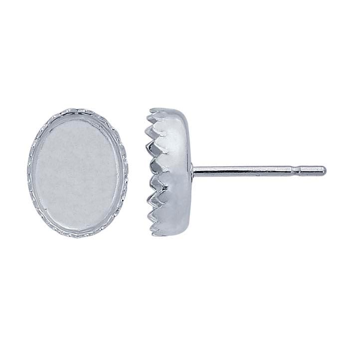 Sterling Silver 8 x 6mm Oval Serrated Cabochon Post Earring Mounting