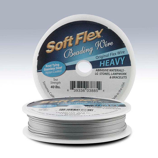 سلك خرز ساتان فضي أصلي 0.48 مم، 49 خيطًا من Soft Flex®، بكرة 30.48 م.