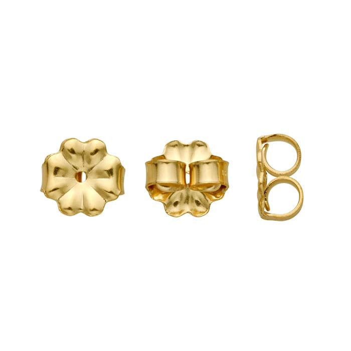 هذه الصامولة الأذنية الاحتكاكية المملوءة بالذهب الأصفر عيار 14/20 ثقيلة الوزن ومثالية لتصاميم الأقراط الطويلة المتدلية والساقطة. تتميز بوجه منقوش وحواف مزخرفة مسننة. تحتوي الصامولة الأذنية على أجنحة طويلة تثبت الدبابيس بشكل أكثر أمانًا. توفر الصواميل الأذنية المملوءة بالذهب عيار الذهب بتكلفة أكثر معقولية من الذهب الخالص، مما يتيح لك التصميم بلمسة المعدن الثمين التي يبحث عنها العملاء وتقديم تصاميمك بسعر يقدره العملاء.