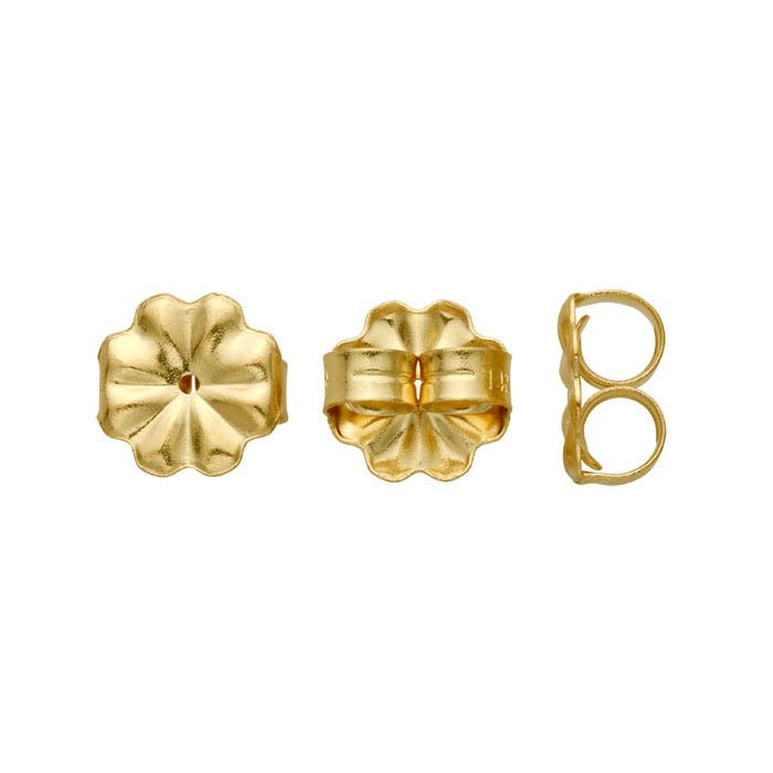 صامولة الأذن الاحتكاكية المغطاة بالذهب الأصفر 14/20 هذه متوسطة الوزن ومثالية لمعظم تصاميم الأقراط المتدلية والساقطة. تتميز بوجه منقوش وحواف مزخرفة مسننة. تحتوي صامولة الأذن على أجنحة طويلة تثبت الدبابيس بشكل أكثر أمانًا. توفر صواميل الأذن المغطاة بالذهب عيار الذهب بتكلفة أكثر معقولية من الذهب الخالص، مما يتيح لك التصميم بلمسة المعدن الثمين التي يبحث عنها العملاء وتقديم تصاميمك بسعر يقدره العملاء.