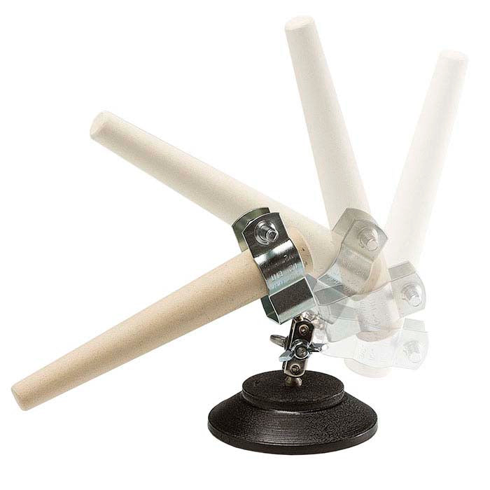يمسك هذا العصا العاكسة للحرارة للخواتم (قطرها 1") الخواتم بأمان أثناء اللحام. الشكل الأملس والمدبب يناسب الخواتم من المقاس الأمريكي 6 إلى 13. العصا بطول 6" مركبة على قاعدة دوارة فولاذية ثقيلة ومتينة. مشبك التحرير العملي يسمح باستبدال العصا بسهولة.