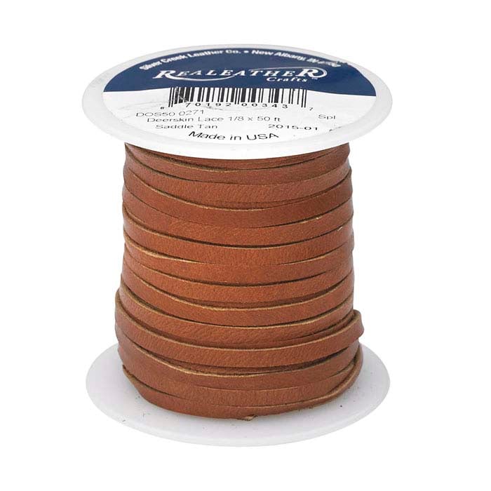 رباط مسطح من جلد الغزال بلون السرج تان 3.17 مم، بكرة 15.24 م
