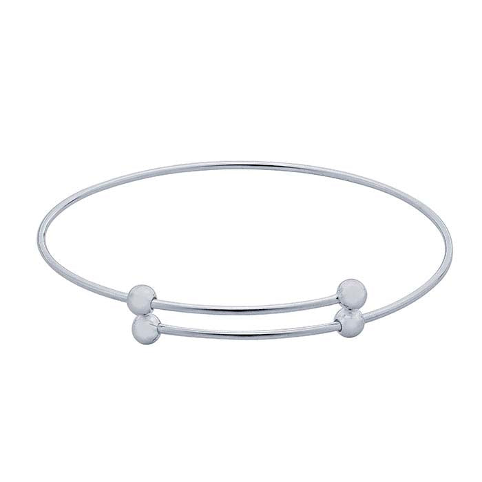The simple design of this expandable sterling silver bangle bracelet allows the double ball ends to slide freely along the wire so that customers can expand the bracelet (up to approx. 3" ID) for easy-on/easy-off wear. The bracelet looks great when worn alone but can also be dressed up with a variety of charms and drops for a more elaborate look.