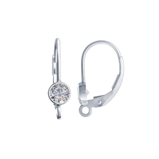 Sterling Silver CZ-Set Lever-Back Ear Wire with Open Ring