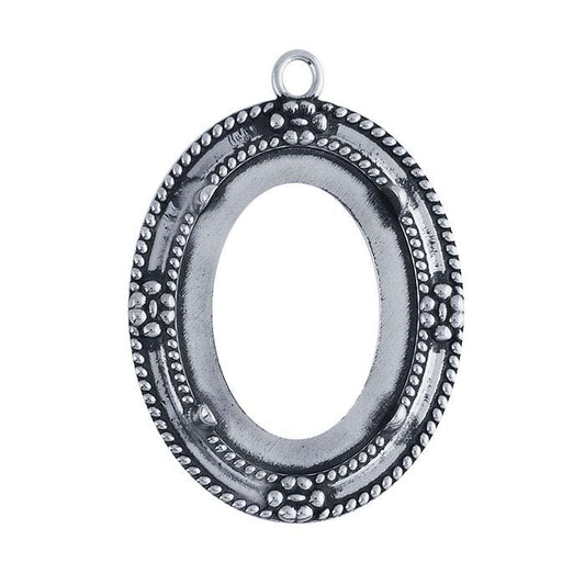 Sterling Silver 30 x 22 Oval Floral Cabochon Pendant Mounting