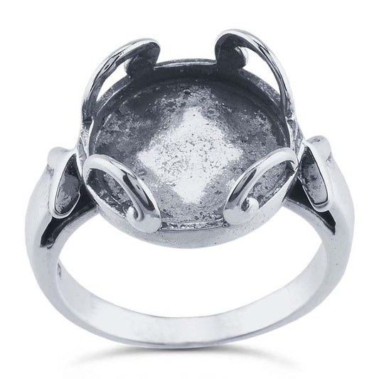 Sterling Silver Swirl Accent 12mm Round Ring Mounting