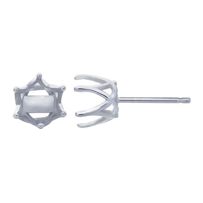 14K Hvidguld 7mm Rund Snurret Hjerte Ørestikmontering, 6-Klo