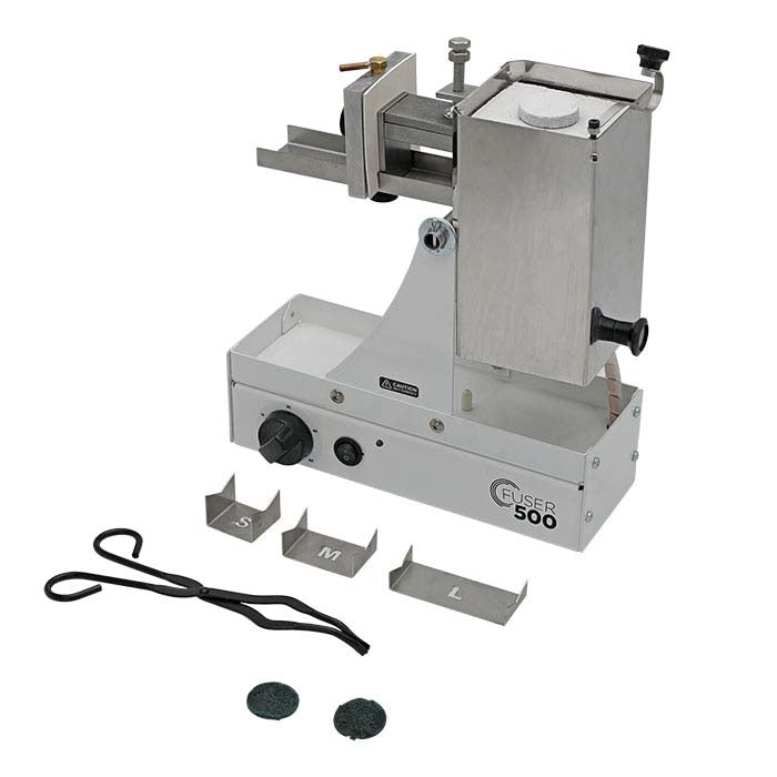 Denne smelteovn er designet til brug med dit Fuser500™ mikrostøbesystem. Et elektrisk element inde i ovnen opvarmer smeltegryden og smelter metallet effektivt, samtidig med at behovet for åben ild elimineres. En timer på basen giver dig mulighed for at fortsætte med andre opgaver, mens du venter på, at metallet smelter. Forvarm din støbeform eller flaske, mens metallet opvarmes, ved at placere den på støbebasen. Basen er lavet af varmebestandigt malet rustfrit stål, forbliver kølig at røre ved under opvarmning og har automatisk slukning.