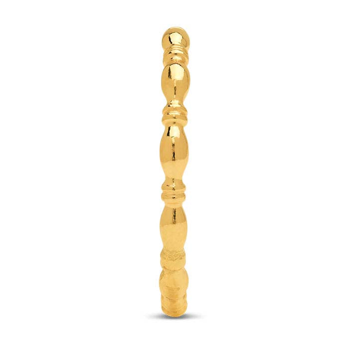 Denne 12/20 guldfyldte ring i gult guld er håndlavet med perlebesat mønstertråd, hvilket giver den et klassisk udseende. Hvis ønsket, kan ringen oxideres for at fremhæve mønsterdetaljerne. Guldfyldte ringe leverer karatguld til en mere overkommelig pris end massivt guld, hvilket giver dig mulighed for at designe med den ædle metalfølelse, som kunderne søger, og tilbyde dine designs til en pris, som kunderne værdsætter.