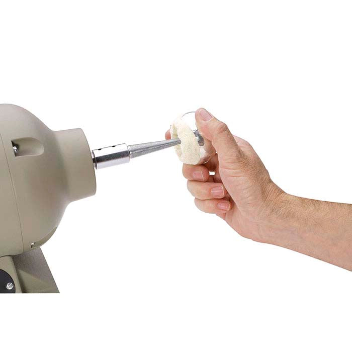 Easily achieve a lustrous polish on large concave surfaces with this dense cotton goblet buff. Suitable for use with a wide variety of polishing compounds, the shape of this buff provides full access to interior contours of stemware, hollowware, and arched or domed structures. Use this buff on any tapered spindle; the leather center helps stabilize the buff and protects the hole to ensure a long service life.