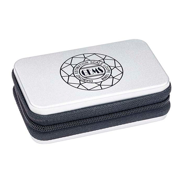 Diese 10-fache Triplettlupe bietet eine klare, verzerrungsfreie Vergrößerung mit dem zusätzlichen Vorteil einer integrierten Skala, die sie ideal für die schnelle Schätzung der Größe/des Gewichts von Diamanten macht. Die in Europa hergestellte Linse ist aplanatisch und achromatisch mit einer Antireflexbeschichtung, um Blendung und Lichtinterferenzen zu minimieren, sodass die Farbe des Diamanten genau beurteilt werden kann. Auf einer klaren integrierten Schicht auf der Linse sind sowohl eine lineare Skala (12 mm/6,5 ct.) als auch eine Umfangsskala für runde Diamanten (0,5–3,5 mm in 0,5-mm-Schritten) aufgedruckt, sodass Sie die Größe und das Gewicht eines Steins genau schätzen können. Zum Gebrauch legen Sie die Linse der Lupe an die Tafel Ihres Steins; die ergonomische Form der Lupe und der bequeme strukturierte Griff sorgen für eine sichere, effektive Verwendung. Ein exklusiver Verriegelungsmechanismus schützt die Linse und ermöglicht die Fokuseinstellung. Das Gehäuse der Lupe besteht aus massivem Aluminium mit einer kratzfesten Beschichtung. Die Lieferung erfolgt in einer gepolsterten Schutzhülle mit Doppelreißverschluss und passgenauem, gestanztem Schaumstofffutter. Die Lupe wird von einer praktischen Kette mit abnehmbarem Clip begleitet. Jede Lupe enthält ein nummeriertes Zertifizierungs- und Garantiedokument und ist durch eine weltweite Registrierung geschützt.