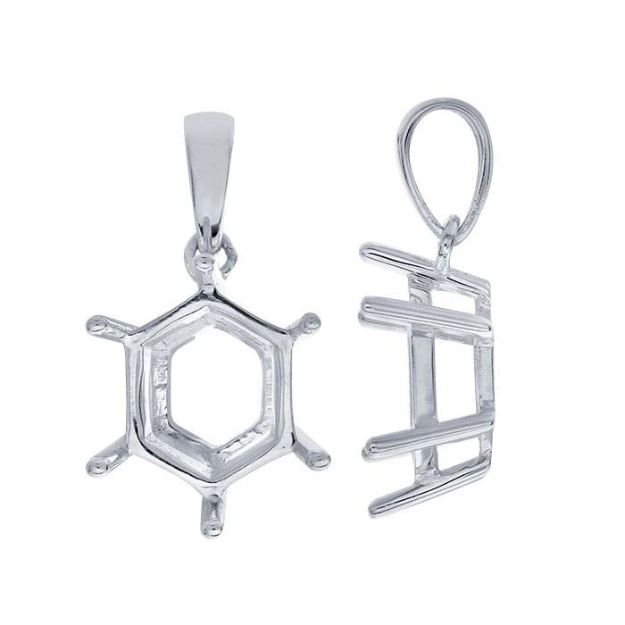 Diese Anhängerfassung aus Sterlingsilber verfügt über einen konischen Bügel und eine sechszackige Korbfassung, die einen 10 x 8 mm großen, sechseckigen, facettierten Edelstein hält. Schneiden Sie eine Aussparung in die Zinken für Ihren Stein und polieren Sie die Zinken anschließend über dem Stein, um ihn zu fixieren. Korbfassungen haben offene Seiten, damit mehr Licht den Stein erreichen und durchdringen kann, was seine Helligkeit und Brillanz verstärkt. Der Klemmstift verfügt über eine Rille für einen sicheren und bequemen Sitz.