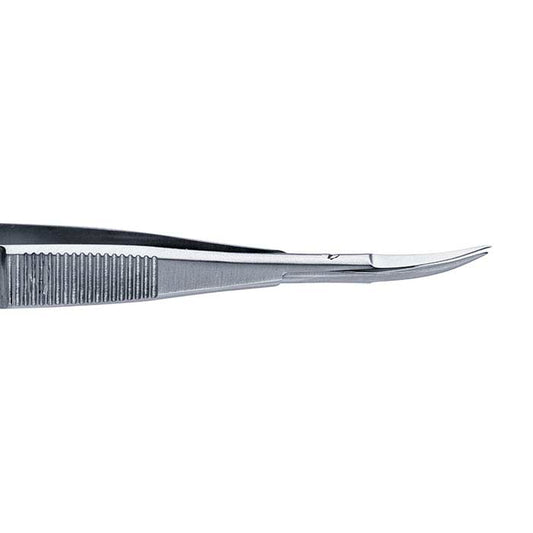101,6 mm Mikroschere mit gebogener Klinge und Quetschfunktion