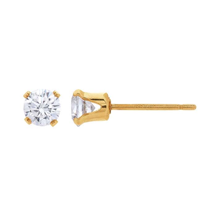 Dieser 14/20 Gelbgold-filled Steckerohrring verfügt über eine Snap-Set™ Fassung mit einem 4 mm runden weißen CZ, der eine kostengünstige Alternative zum Diamanten, dem Geburtsstein für April, bietet. Der Reibungsstecker hat eine Nut, die für den sichersten und bequemsten Sitz sorgt; Steckerohrringe benötigen eine Ohrmutter, um den Stecker an Ort und Stelle zu halten.