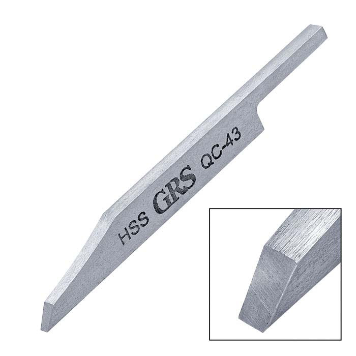Dieser verkürzte flache QC-43-Gravierstichel (1,6 mm, 0,063 Zoll) von GRS® ist ideal für die Verwendung mit Schnellwechselhaltern und anderen Handstücken. Er hat leicht konische Seiten und eine flache Schneide. Der Gravierstichel wird häufig zum Entfernen von Hintergründen, für Ränder, helle Schnitte, Schriftzüge und Wellenschnitte verwendet. Verwendung mit 1/8-Zoll-QC-Werkzeughalter. Die Schnellwechselstichel von GRS® bestehen aus Schnellarbeits-Chromstahl, sind langlebig und haben eine scharfe Schneide; sie lassen sich leicht umformen und nachschärfen.