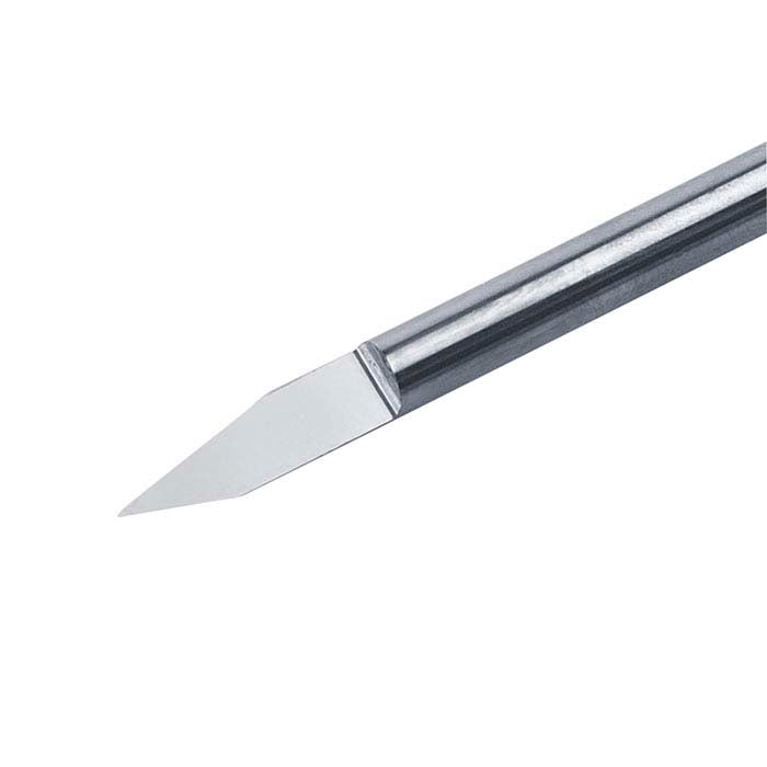 This micro-grain carbide cutter has a specially ground tip, ideal for cutting out shapes from gold, silver and other precious metals. It fits U-MARQ® engraving machines such as Universal, GEM-CX5 and GEM-FX5.