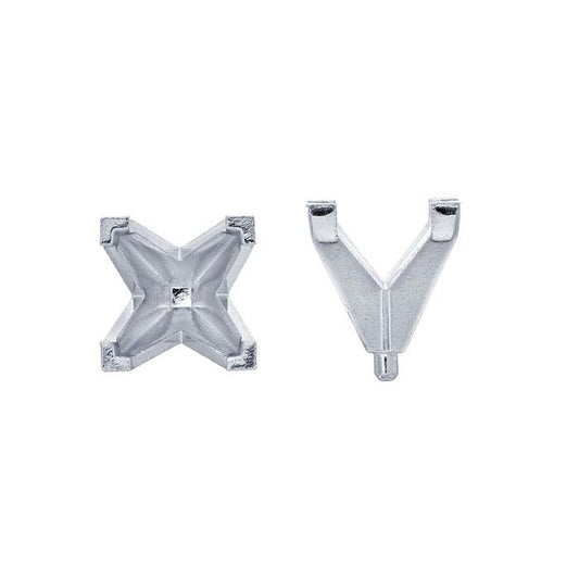 14Κ Λευκός Χρυσός 8,5mm Princess 4-Ακίδων Στήριγμα με Πείρο