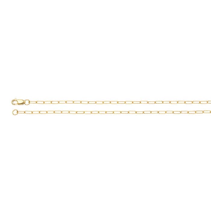 Προσφέροντας μια απλή, κλασική εμφάνιση, αυτή η επίπεδη αλυσίδα καλωδίου από κίτρινο χρυσό 14/20 έχει τραβηχτεί για να δημιουργήσει επιμηκυμένους συνδέσμους. Προσθέστε γούρια στους μεμονωμένους συνδέσμους ή χρησιμοποιήστε την ως φόντο για ένα αγαπημένο μενταγιόν.