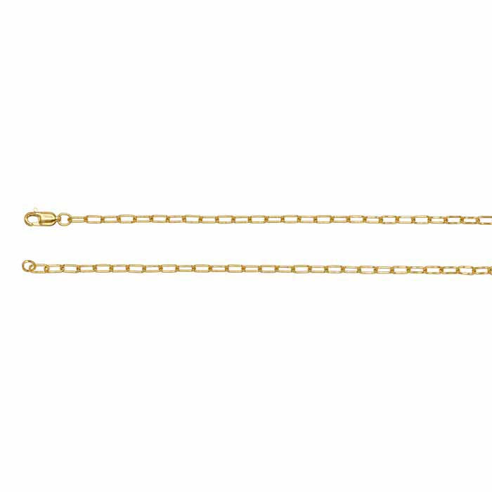 Οι μακριές συνδέσεις σε αυτήν την αλυσίδα καλωδίου από κίτρινο χρυσό 14/20 της δίνουν μια κομψή εμφάνιση. Προσφέρετε την αλυσίδα όπως είναι ή χρησιμοποιήστε την ως βάση για τα προσαρμοσμένα σχέδιά σας.