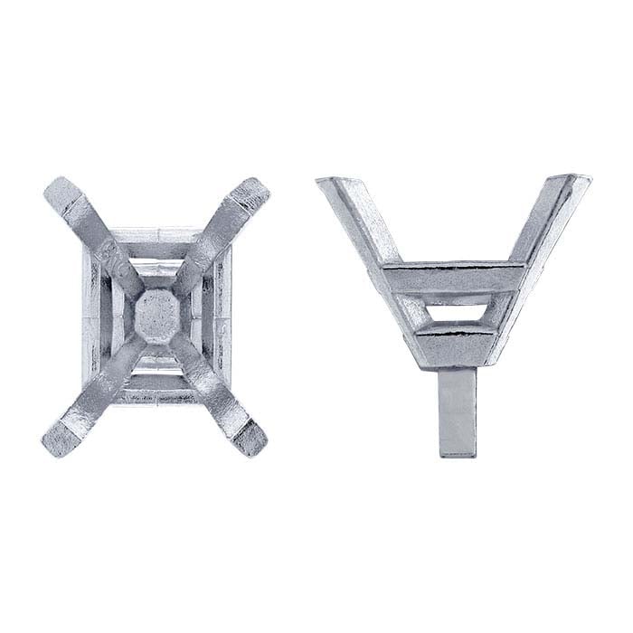 Αυτή η βάση από λευκό χρυσό 14 καρατίων διαθέτει κωνικό πείρο και κρατάει μία πολύεδρη πέτρα κοπής σμαραγδιού 7 x 5mm. Μια κλασική επιλογή, η βάση με 4 νύχια στηρίζει την πέτρα σε τέσσερις πλευρές. Χρησιμοποιήστε βάσεις με πείρους σε στεφάνες δαχτυλιδιών με τρύπα· επιτρέπουν μεγαλύτερη ακρίβεια, καθαριότητα και ταχύτητα κατά τη θέση της βάσης στη στεφάνη. Αν επιθυμείτε, κόψτε τον πείρο για να χρησιμοποιήσετε τη βάση με άλλες στεφάνες ή εξαρτήματα.