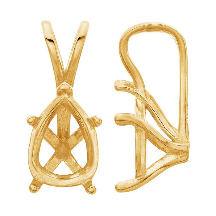 Αυτό το μενταγιόν στήριξης από 14 καράτια κίτρινο gold κρατάει μία 6 x 4mm αχλαδόσχημη πολύγωνη πέτρα σε στήριγμα με 5 ακίδες. Κόψτε μια θέση στις ακίδες για να φιλοξενήσετε την πέτρα σας, στη συνέχεια γυαλίστε τις ακίδες πάνω στην πέτρα για να την ασφαλίσετε στη θέση της. Το μενταγιόν διαθέτει κρίκο που συμπληρώνει το σχέδιο της στήριξης και διευκολύνει την προσθήκη σε αλυσίδα ή κορδόνι.