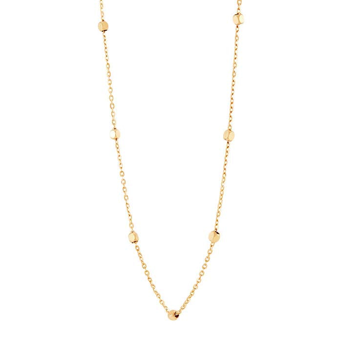 Αυτό το ολοκληρωμένο κολιέ από κίτρινο χρυσό 14 καρατίων διαθέτει αρκετά μενταγιόν με χάντρες 1,89mm, το καθένα με γυαλιστερό φινίρισμα. Το κολιέ ολοκληρώνεται με κούμπωμα τύπου ελατηρίου.