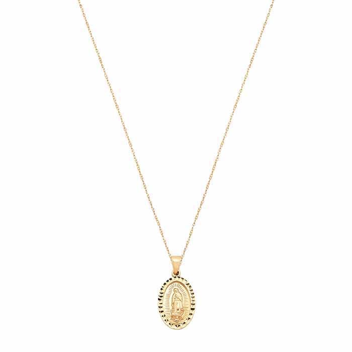 Αυτό το ολοκληρωμένο κολιέ από κίτρινο χρυσό 14 καρατίων διαθέτει ένα μενταγιόν με τη Μαρία, τη Μακαριστή Μητέρα. Το κολιέ έχει προέκταση 2" για ρυθμιζόμενο μήκος και ολοκληρώνεται με κούμπωμα τύπου ελατηρίου.