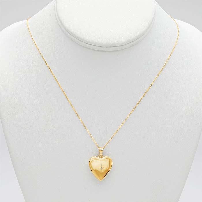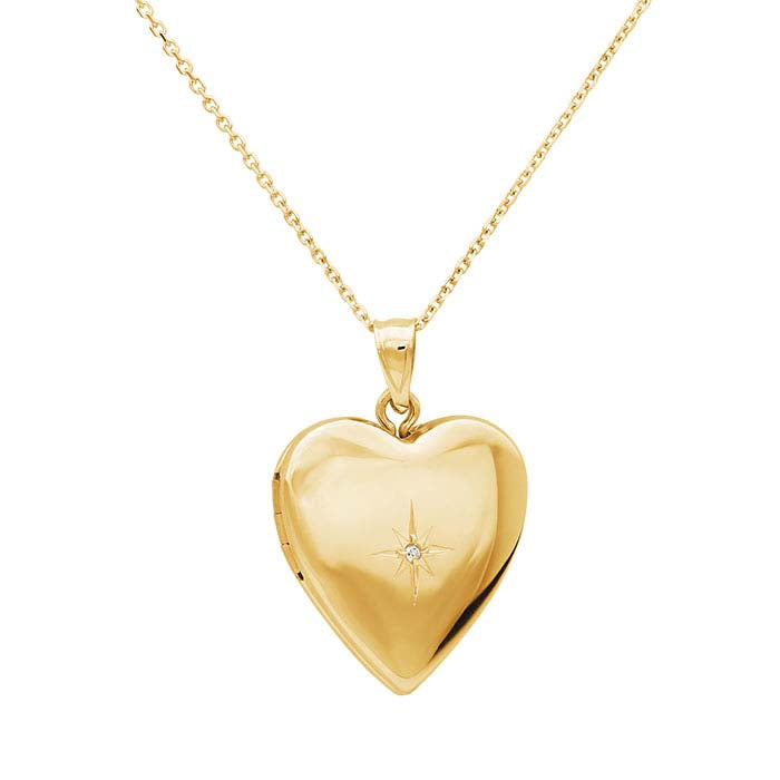 Αυτό το κολιέ από κίτρινο χρυσό 14 καρατίων διαθέτει μενταγιόν καρδιάς 27,8 x 19,2 χιλιοστά με αστέρι στο κέντρο και είναι διακοσμημένο με ένα στρογγυλό λευκό διαμάντι 0,005 καρατίων (καθαρότητα I1/χρώμα G-H) σε αλυσίδα καλωδίου 1,1 χιλιοστών. Το πιο κοινό στυλ αλυσίδας, οι αλυσίδες καλωδίου σχηματίζονται απλά συνδέοντας μονά συνδετικά κάθετα το ένα στο άλλο. Τα συνδετικά μπορεί να είναι στρογγυλά, οβάλ ή άλλων σχημάτων.