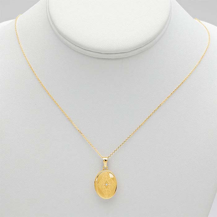 Κολιέ με Οβάλ Μενταγιόν από 14Κ Κίτρινο Χρυσό με Διαμάντια
