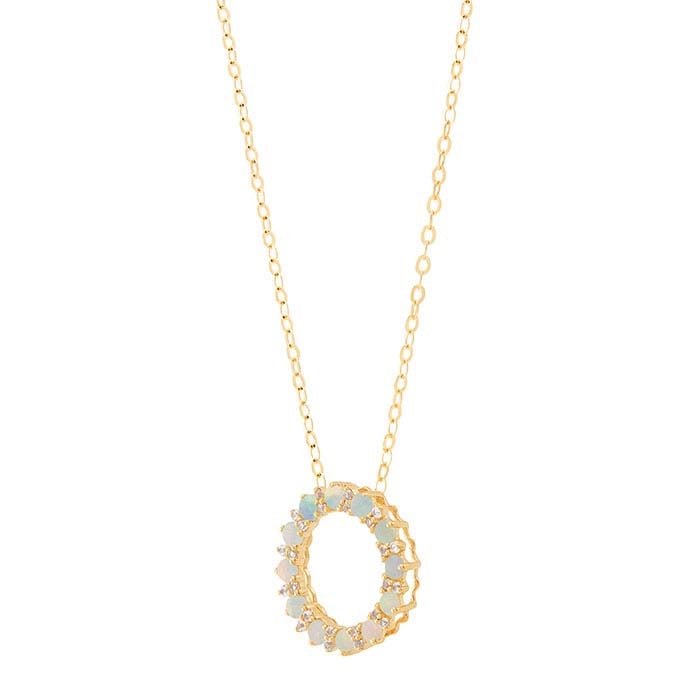 Κολιέ Κύκλος με Οπάλιο και Εργαστηριακά Καλλιεργημένο Ζαφείρι σε Κίτρινο Χρυσό 14Κ