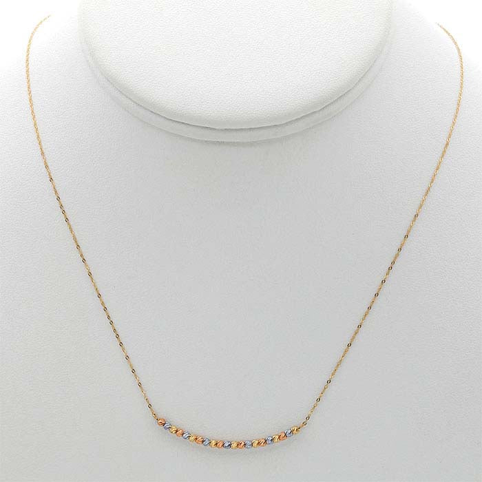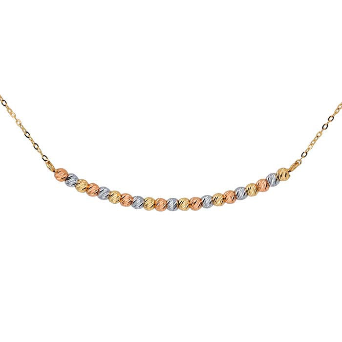Κατασκευασμένο με αλυσίδα καλωδίου από κίτρινο χρυσό 14 καρατίων, αυτό το ολοκληρωμένο κολιέ διαθέτει στρογγυλές χάντρες 1,7 χλστ. από κίτρινο, ροζ και λευκό χρυσό· κάθε χάντρα έχει εντυπωσιακές όψεις.