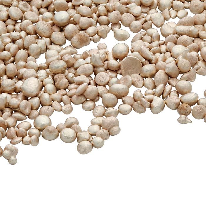 Get clean, durable casts with this zinc-free, true bronze casting grain. It delivers a deep ancient bronze color with rich red undertones and takes patina beautifully. Sold by the pound. Applications Any casting method. Casting and Cleaning In general, your casting temperature should be 100˚F (37.7˚C) above the liquidus point (somewhat hotter if the castings are intricate). Use a small amount of high-quality flux when melting with an open flame. We recommend Matt’s Casting Flux™. For further cleaning, mechanical means are recommended. Re-Using If you plan to re-use ancient bronze castings, remove the copper oxides from the surface in a pickling solution or by mechanical means. We recommend a minimum 1:1 ratio of new grain to used bronze. All re-used bronze should be clean and free of debris. Composition All ingredients are kept in an oxygen-reduced atmosphere during the melting and pouring process to ensure optimum deoxidation. The grain is composed of 90% copper with some tin; it fits into the CDA#90700 category.