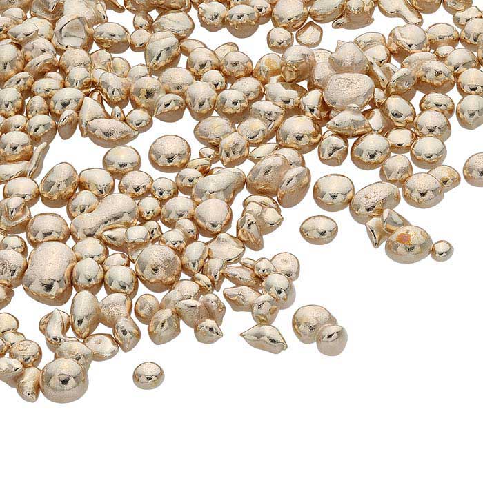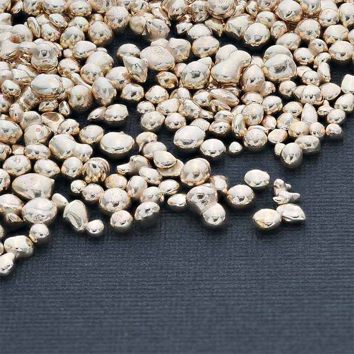 Get clean, durable casts with this zinc-free, true bronze casting grain. It delivers a deep ancient bronze color with rich red undertones and takes patina beautifully. Sold in five pound packages. Applications Any casting method. Casting and Cleaning In general, your casting temperature should be 100˚F (37.7˚C) above the liquidus point (somewhat hotter if the castings are intricate). Use a small amount of high-quality flux when melting with an open flame. We recommend Matt’s Casting Flux™. For further cleaning, mechanical means are recommended. Re-Using If you plan to re-use ancient bronze castings, remove the copper oxides from the surface in a pickling solution or by mechanical means. We recommend a minimum 1:1 ratio of new grain to used bronze. All re-used bronze should be clean and free of debris. Composition All ingredients are kept in an oxygen-reduced atmosphere during the melting and pouring process to ensure optimum deoxidation. The grain is composed of 90% copper with some tin; it fits into the CDA#90700 category.