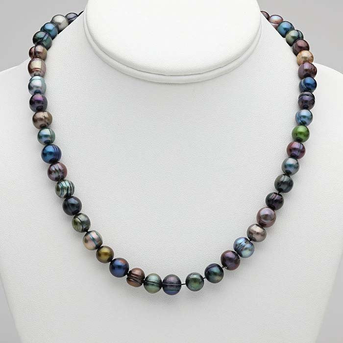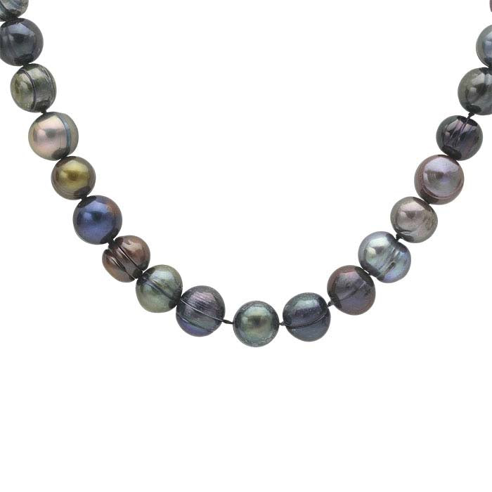 Αυτό το τελειωμένο κολιέ με μαργαριτάρια διαθέτει καλλιεργημένα στρογγυλά μαργαριτάρια 8–9mm σε ποικιλία χρωμάτων. Είναι τελειωμένο με κούμπωμα από ασήμι sterling με απελευθέρωση push, επιχρυσωμένο με 14 καράτια κίτρινο χρυσό.