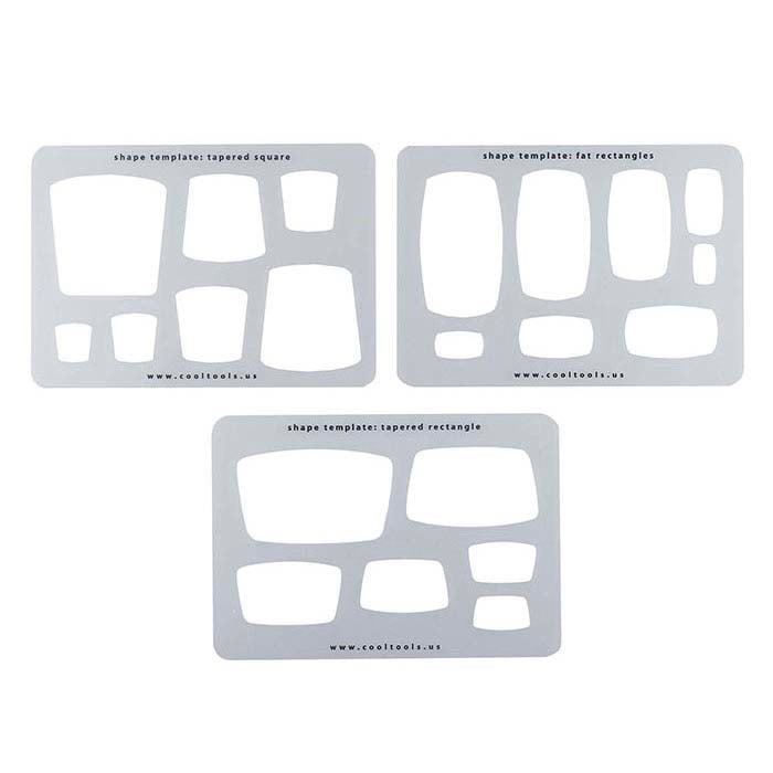 Αυτά τα πρότυπα έχουν σχεδιαστεί για να σας βοηθήσουν να δημιουργήσετε σχήματα σε μεταλλικό πηλό ή φύλλο μετάλλου. Τοποθετήστε το πρότυπο πάνω στο υλικό και χρησιμοποιώντας ένα νυστέρι, γραφίδα ή διαβήτη, κόψτε ή χαράξτε κατά μήκος του σχήματος του προτύπου. Περιλαμβάνονται τρία πρότυπα σχημάτων: