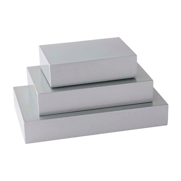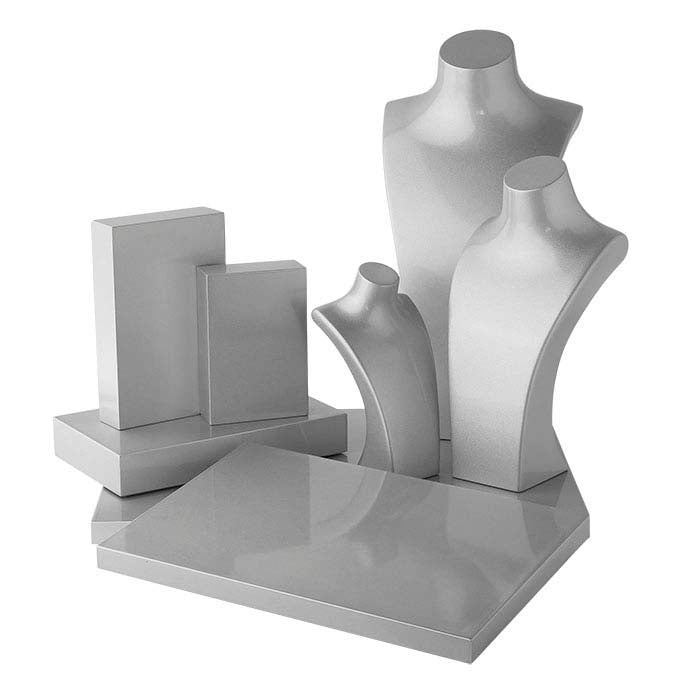 Αυτό το μεταλλικό ασημί πλαστικό μπλοκ είναι ένα απλό και αποτελεσματικό στοιχείο στην συνολική σας παρουσίαση· χρησιμοποιήστε το με διάφορους τρόπους για ευελιξία στην παρουσίασή σας. Ως βάση προβολής, είναι ιδανικό για να αναδείξετε κολιέ ή βραχιόλια—τοποθετήστε τη βάση σε μία πλευρά και κρεμάστε ένα κολιέ πάνω της. Ή χρησιμοποιήστε αυτή τη βάση ως ανυψωτικό μπλοκ, προσθέτοντας γρήγορα ύψος σε μια παρουσίαση για να τραβήξετε την προσοχή και το ενδιαφέρον των πελατών. Αυτή η βάση είναι κατασκευασμένη από πλαστικό και διαθέτει λευκή αφρώδη επένδυση στο κάτω μέρος που προστατεύει τους πάγκους σας και αποτρέπει την ολίσθηση.