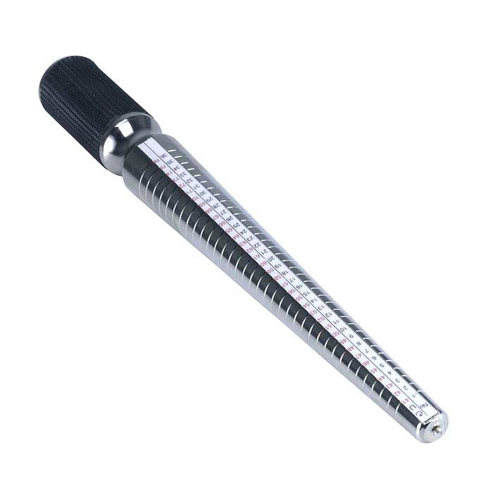 Αυτό το αλουμινένιο ραβδί δαχτυλιδιών είναι ιδανικό για όλες τις ανάγκες μέτρησης και μεγέθους δαχτυλιδιών σας. Το ραβδί δαχτυλιδιών διαθέτει λαβή καλυμμένη με καουτσούκ για να εξασφαλίζει ασφαλές κράτημα κατά τη χρήση, και μετρά με ακρίβεια τα μεγέθη Η.Π.Α. 1–15 με σαφώς σημειωμένα βήματα 1/4 μεγέθους.
