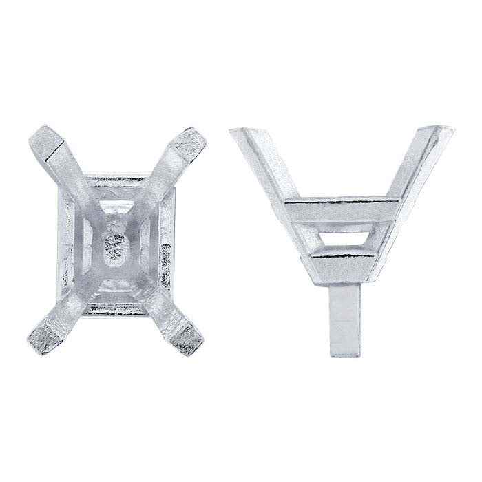 Sterling Silver 7 x 5mm Emerald-Cut 4-Prong Setting with Peg