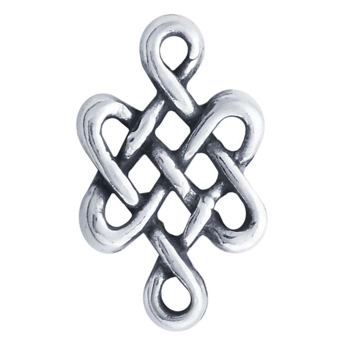 This sterling silver link component features a dimensional woven Celtic knot; the back of the component is flat. Use it as is for an earring drop, add a bail and gemstone dangle for a pendant, or use jump rings to connect two or more links in a variety of necklace and bracelet designs. The component is oxidized to add contrast and highlight the details.