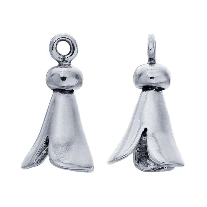 This sterling silver component features a squash blossom design with three petals. The component has a bright finish. Add a bail to create a necklace or add it to an ear wire to create a custom earring drop.